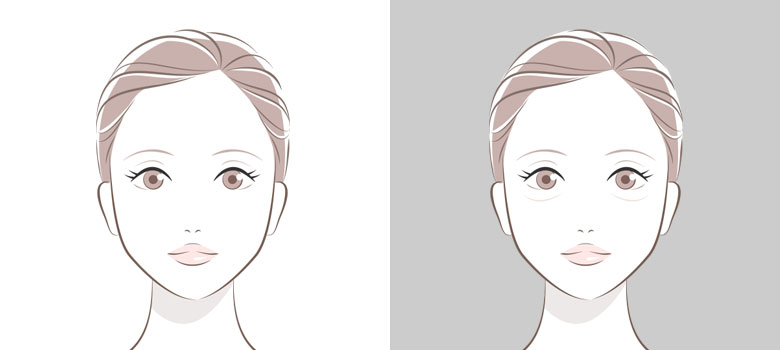 実は左側(背景白)の女性の目の下に薄い線を1本追加したのが右側(背景グレー)のイラストです。
