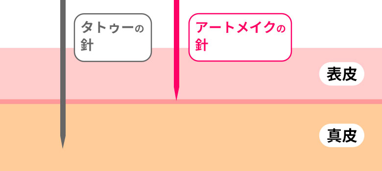 タトゥーを入れると永久で、アートメイクは数年間の維持という大きな違いがあります。永久でないため、数年に一度リタッチ(デザインの変更や修正)を行う必要がありますが、年齢を重ねることでヘアラインが変わったとしても再度デザインを修正することができるのは強みの一つでしょう。