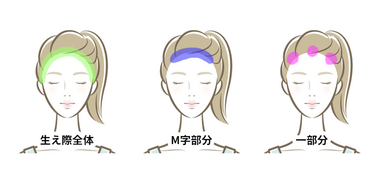 別に薄毛ではないけれど、おでこが広くて悩んでいるという女性がおられます。また、ヘアラインがキレイに整っていなくて、丸みのある女性らしい輪郭にしたいという悩みを持つ方にもおすすめします。