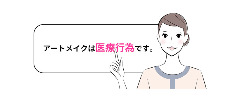 また、アートメイクは医療行為になります。医師法でもアートメイクは「医師、または看護師の免許を持つ者」と明記されており、「施術場所は医療機関内である」と定められています。