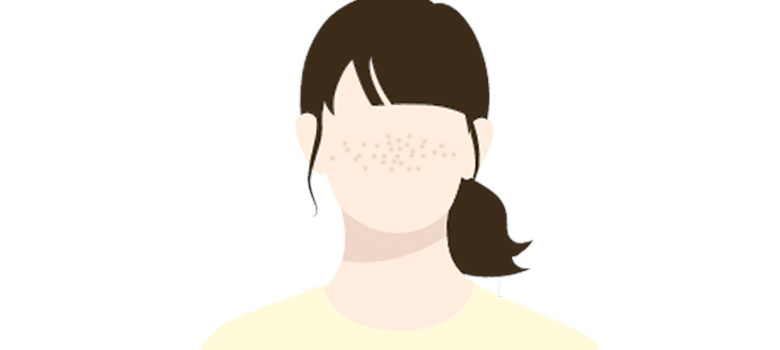 3歳~5歳くらいの幼児期から見られる場合が多く、思春期の多感な時期に自身のそばかすについて悩んだりする方も少なくありません。小さなシミが鼻を中心に左右に広がっているケースが多く、顔全体に広がっていることもあります。シミができている部分がスズメ(雀)の卵の柄にも見えることから雀卵斑とも呼ばれています。