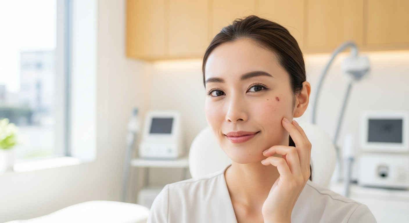 ほくろの大きさにもよりますが、皮膚への負担が少なく、短時間でほくろ除去施術が完了するのが特徴です。ダウンタイムが短く、日常生活に支障が出にくいため、美容目的で選ばれる方が多い治療法で、治療前には医師がほくろの状態を確認し、レーザー適応かどうかを丁寧に判断します。