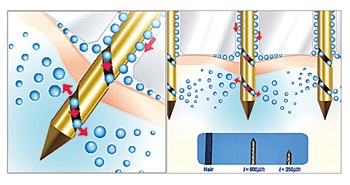 その最大の特徴は、針のスパイラル構造であり、40Gというきわめて細い針でもしっかりと薬液を真皮内に届けることができます。