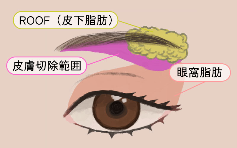 まぶたのたるんだ皮膚を切除するときに眼窩脂肪やROOFなどの余分な脂肪も取り除くことがあります。