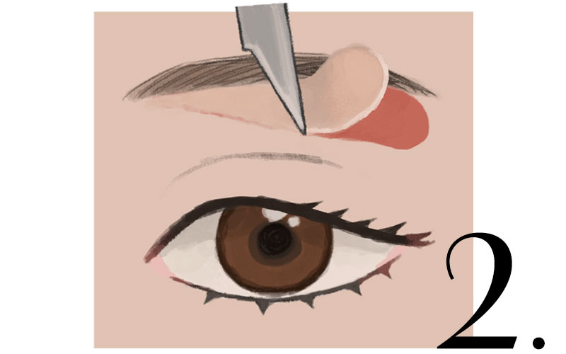 眉毛のラインに沿って縫うため傷跡はほとんど目立ちません。