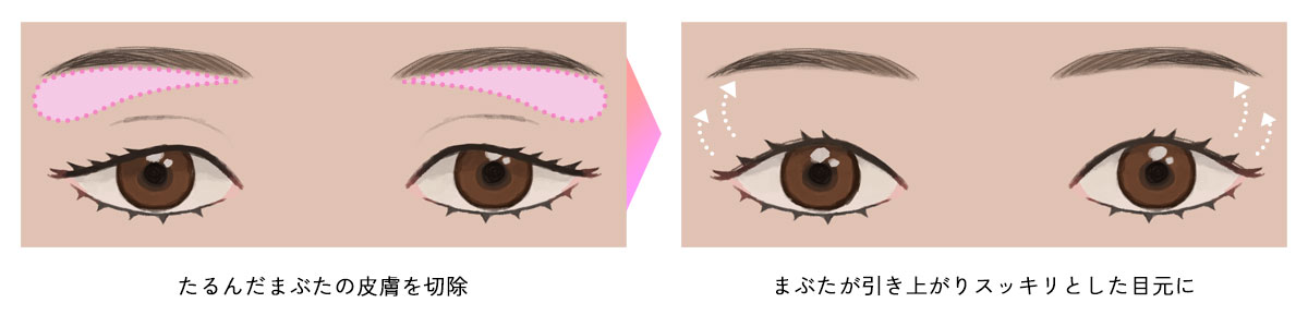まぶたの余分な皮膚を切除して目元のたるみを改善します。