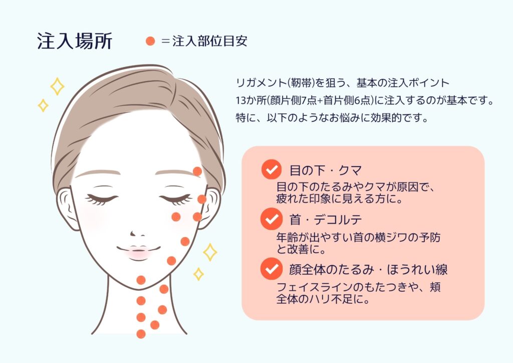 肌質の変化とたるみ感の両方が気になる方にとって、内側から整えていくような治療として選ばれています。