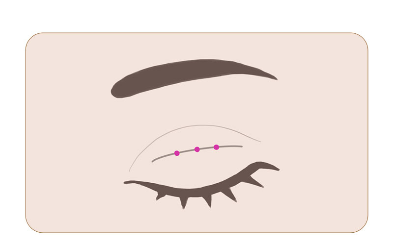二重のラインをシュミレーションしデザインを決定していきます。瞼板法の場合はまぶたを糸で留める位置や何点で留めるかを決めます。