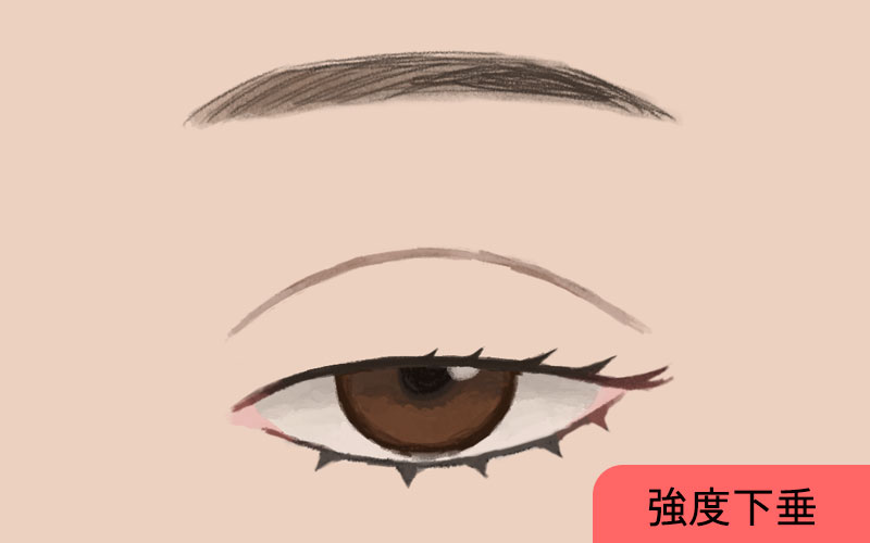 眉だけが上がり瞳孔が半分以上隠れている