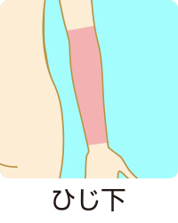 うなじ・背中上部・ひじ上・ひざ下・おしり