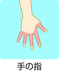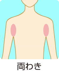 両わき・首・バストトップ・へそ下・へそ回り・手の甲・手の指・ひざ小僧・足の甲・足の指