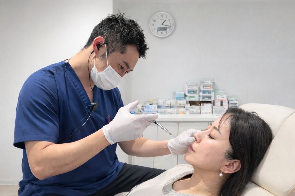 医師と共に注入箇所や本数を慎重に決め、麻酔を塗ってから注射していきます。