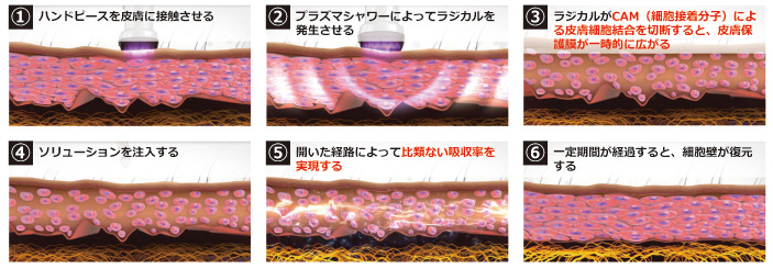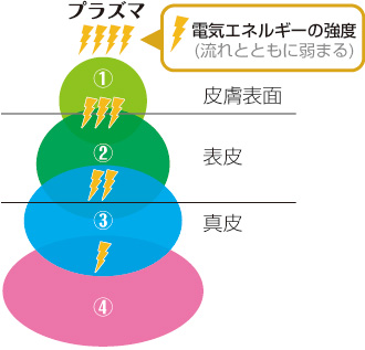 プラズマは電気エネルギーを持つ電離した気体であり、皮膚の表面から表皮レベルまで作用します。