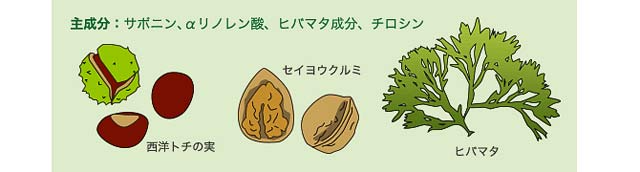 輪郭注射の主成分は、西洋トチノキの種子・西洋クルミ・ヒバマタ(海藻)などのメディカルハーブです。西洋では古くから美容や健康管理のために医薬品として用いられ、人に優しく副作用がない点が特長です。