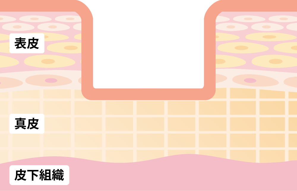 クレーターの境目がはっきりしており垂直に凹んでいるのが特長です。底面が平らで比較的へこみは浅く、3つのタイプの中では最も頻度の高いニキビ跡になります。